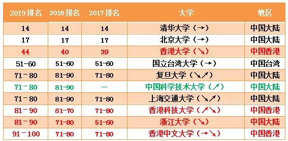 香港3所,分別是香港大學(xué)(#44)、香港科技大學(xué)、香港中文大學(xué)。